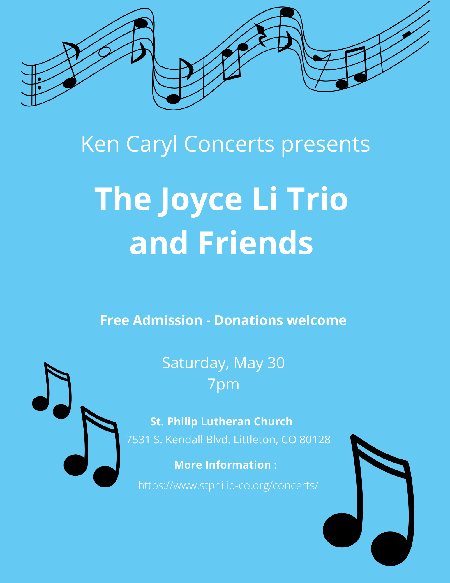 Ken Caryl Concerts was established in 2016 as an outreach mission of St. Philip Lutheran Church. The series offers 3-4 concerts per year featuring a wide variety of musical talents from our church family and the surrounding community, including sacred and secular music of all genres. It is our hope to entertain, educate, inspire, and extend a warm welcome to the surrounding community with these events. All concerts are free of charge, though free-will donations are accepted to support the series and local charities.
